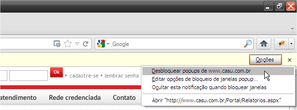 Passo 3: Em seguida clique em Desbloquear popups de www.casu.com.br