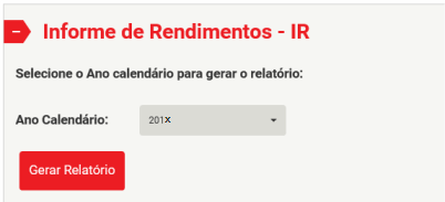 Passo 3: Em seguida clicar no item Informe de Rendimentos - IR. Selecione o Ano Calendário e clique em Gerar Relatório.